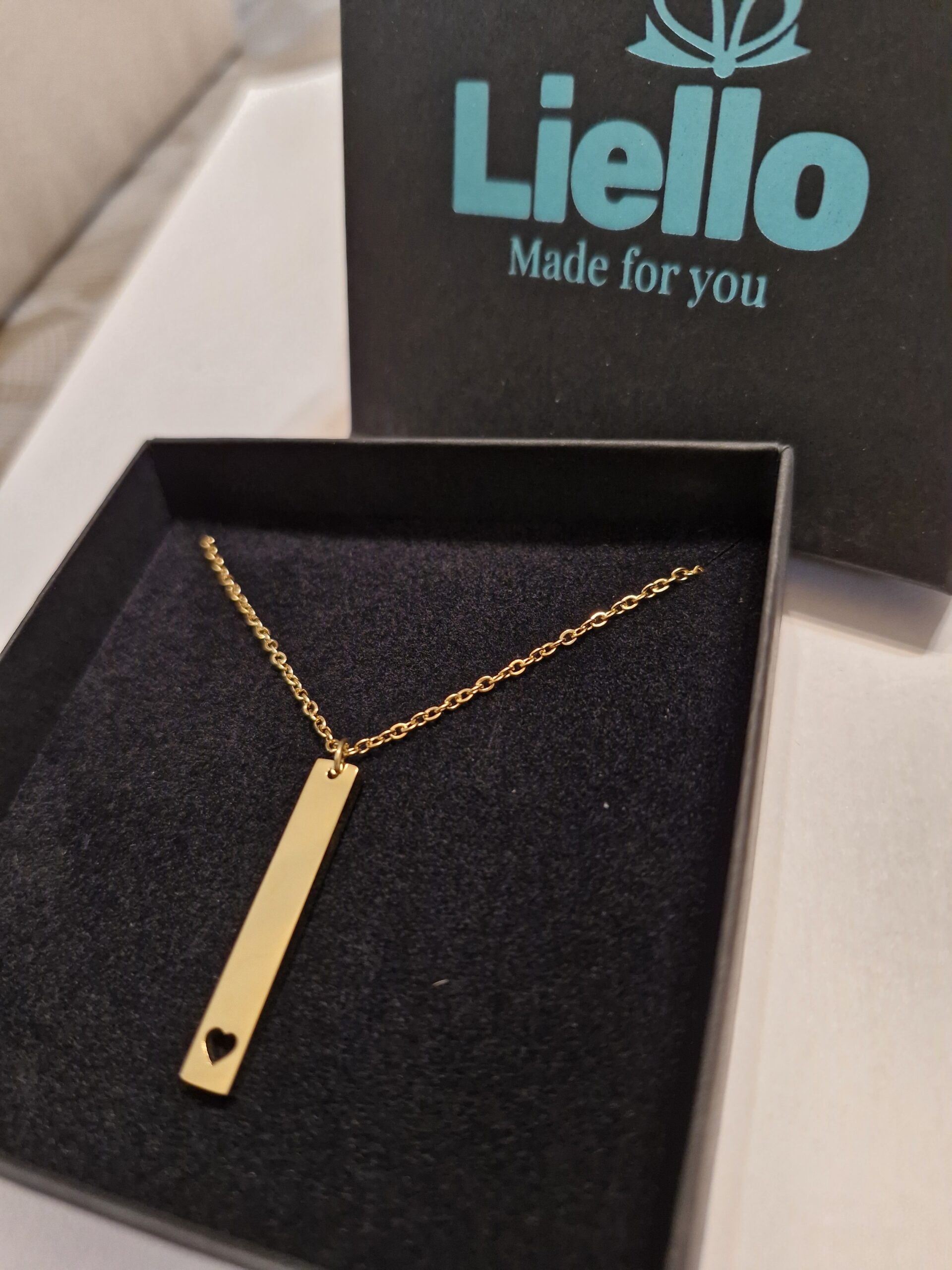 Deze elegante ketting heeft een fijn staafhangertje met een subtiel hartje onderaan.